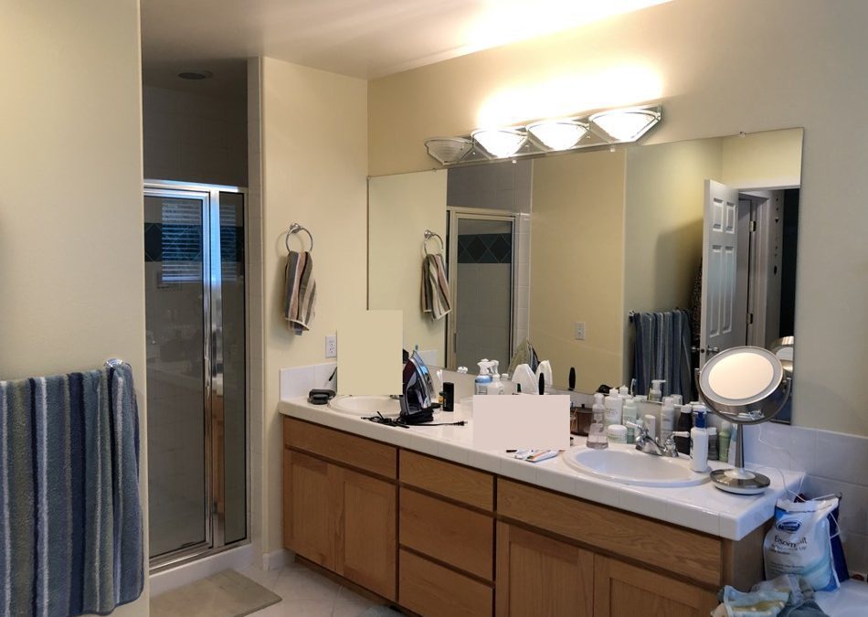 When I see a bathroom like this – I only see potential. My brain starts racing and I get all these great ideas. Now it is my time to design and crack the code of this space and give the homeowners the home they have desired for so long.