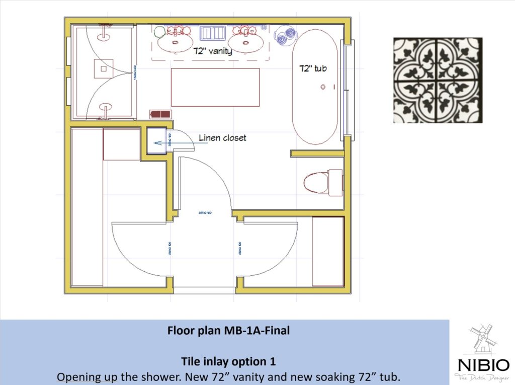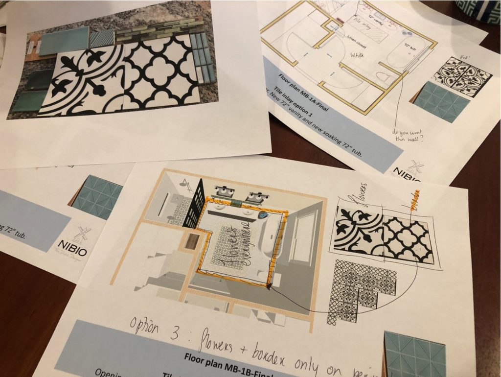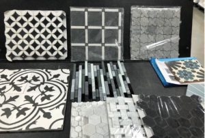In Design Round 2 we explored the materials we fell in love with. Are we doing an inlay of these tiles? Or are we making a border inlay with 2 different tiles.