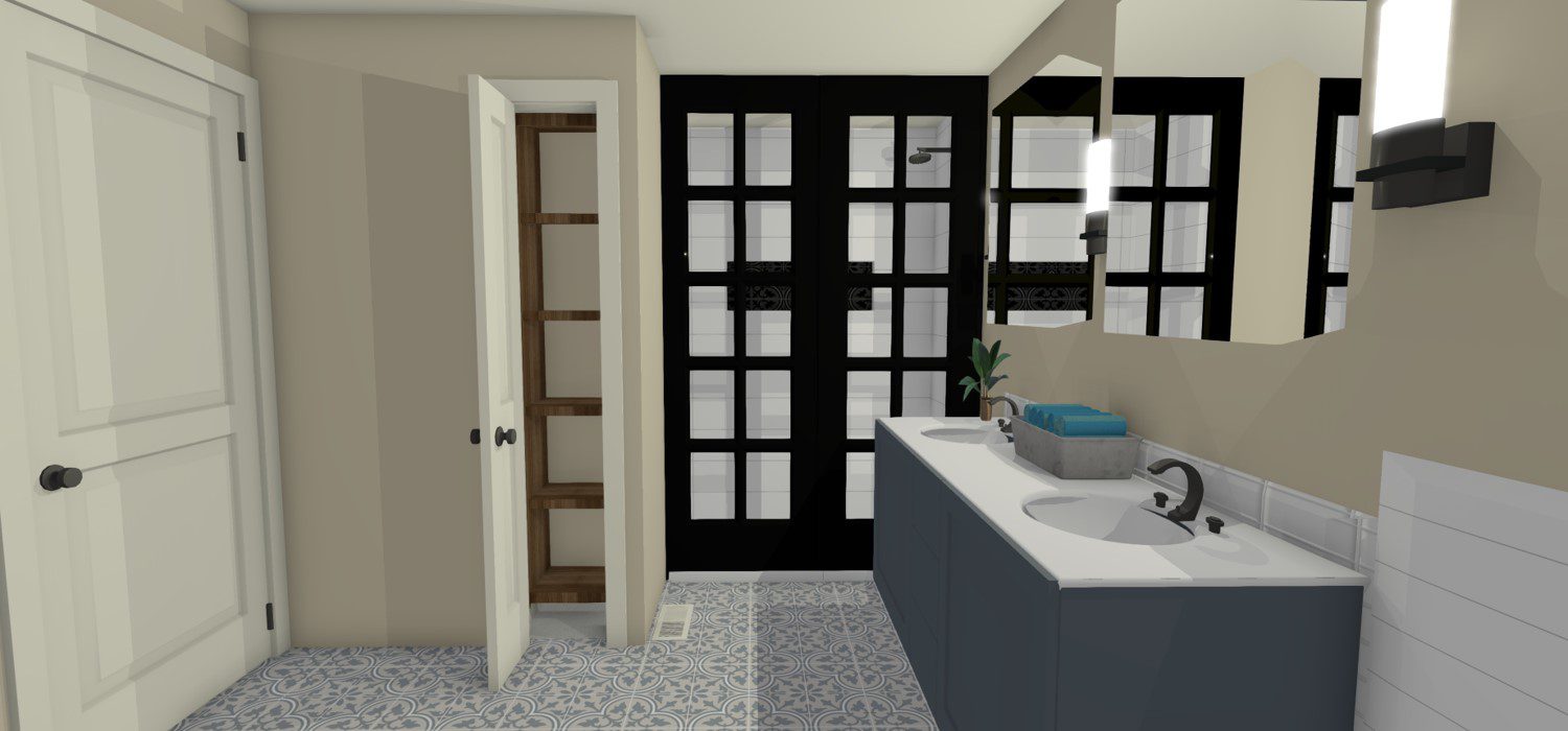 Small changes from design 1A. Shower panel only, no door. Relocated the linen closet for easy access. Removed the privacy wall.