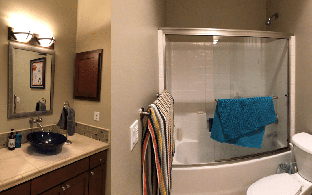 The bathroom is outdated, the vanity is too low and getting into the shower is an obstacle course.