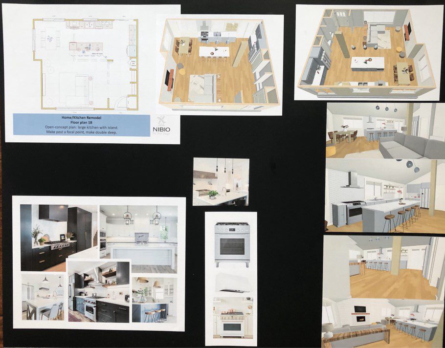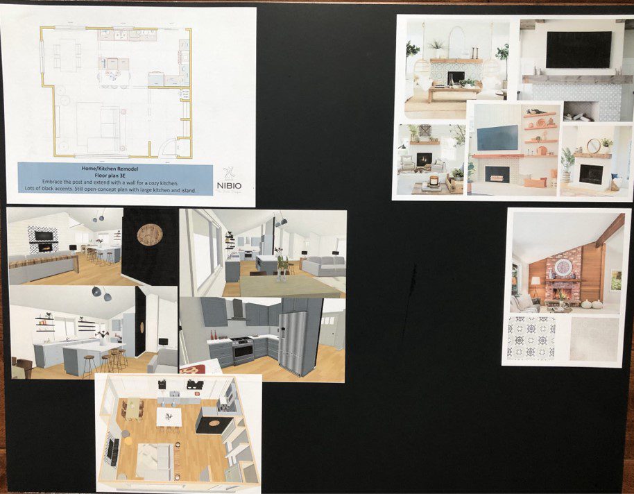 Holding up the mood board with pictures what it will look like.