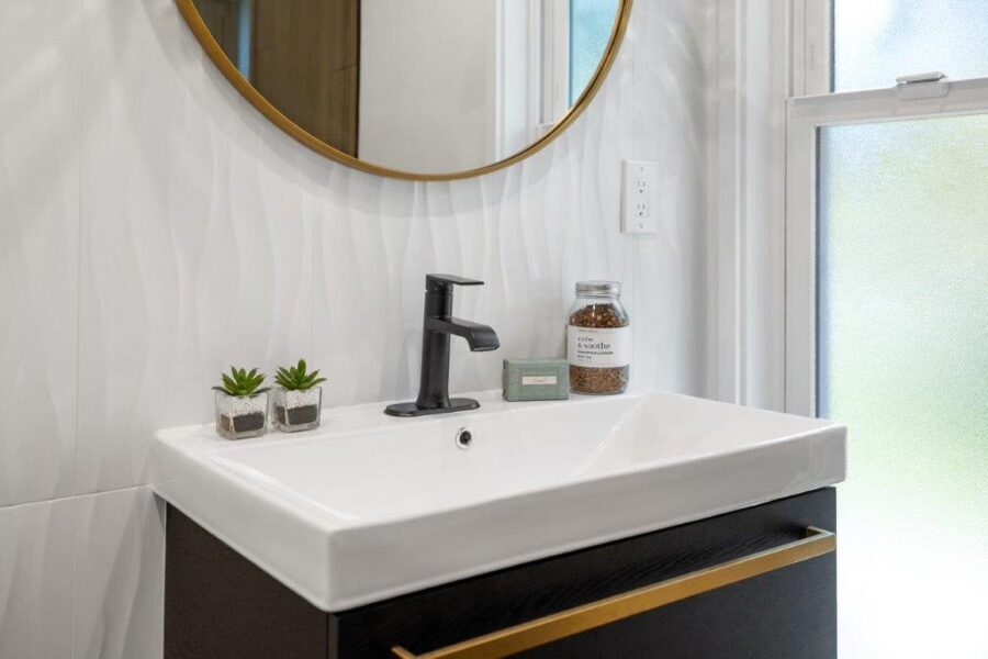 I firmly believe that a kitchen or bathroom remodel is not just about buying new cabinets or a new bathtub; it’s about discovering the space, finding the hidden potential, and exploring all the opportunities. And that is exactly what we did in this project. Using gorgeous materials like wood tones, black, and with a splash of brass!
