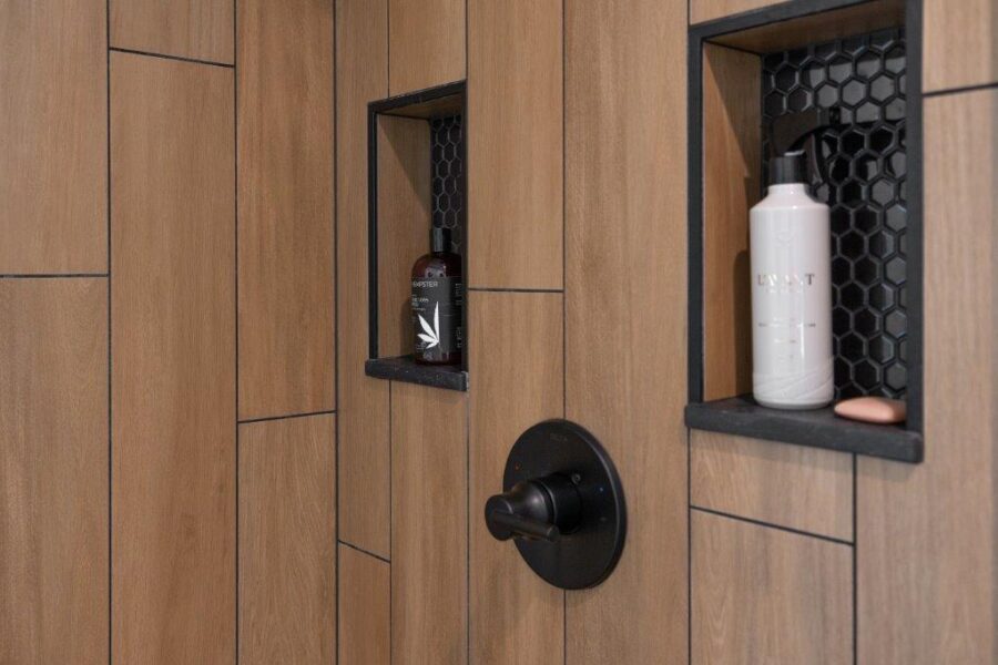 Black and Wood Tones Bathroom