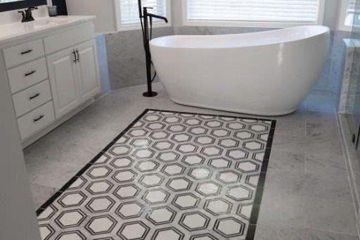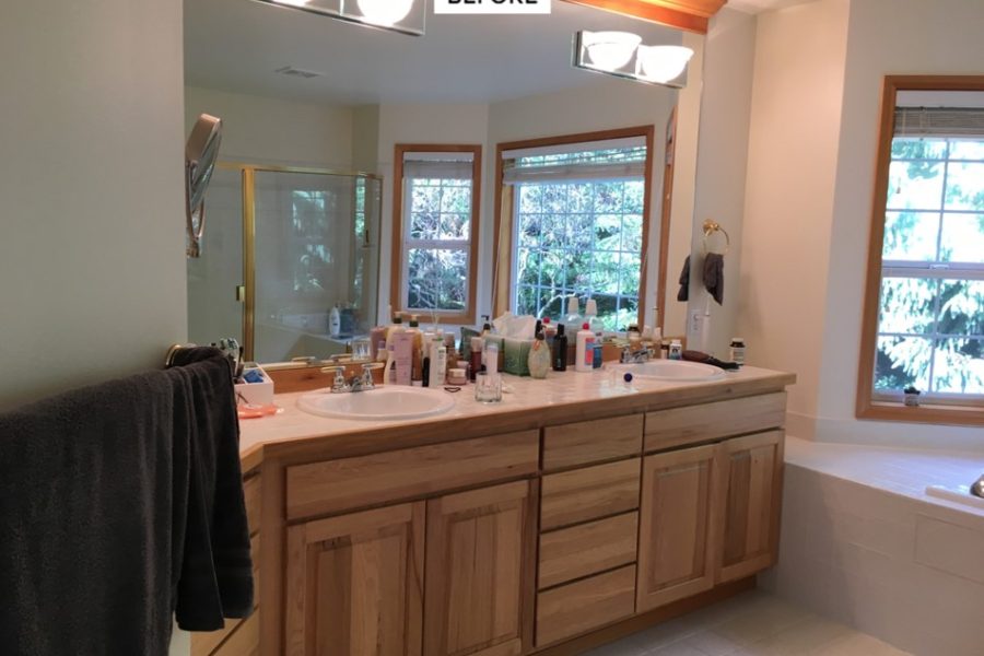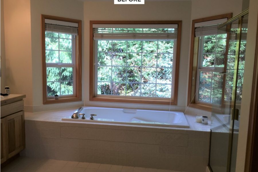 The goal for these homeowners was to redesign their new master bathroom into a luxurious bathroom retreat that matches this era and their style. Although the space was really big, there was not a lot of functional space. Cracking the code of this impossible space resulted in overhauling the entire Master area to create a new luxurious master bathroom, with bigger master closets, and give purpose to the neglected bedroom nook and updating to the master bedroom.