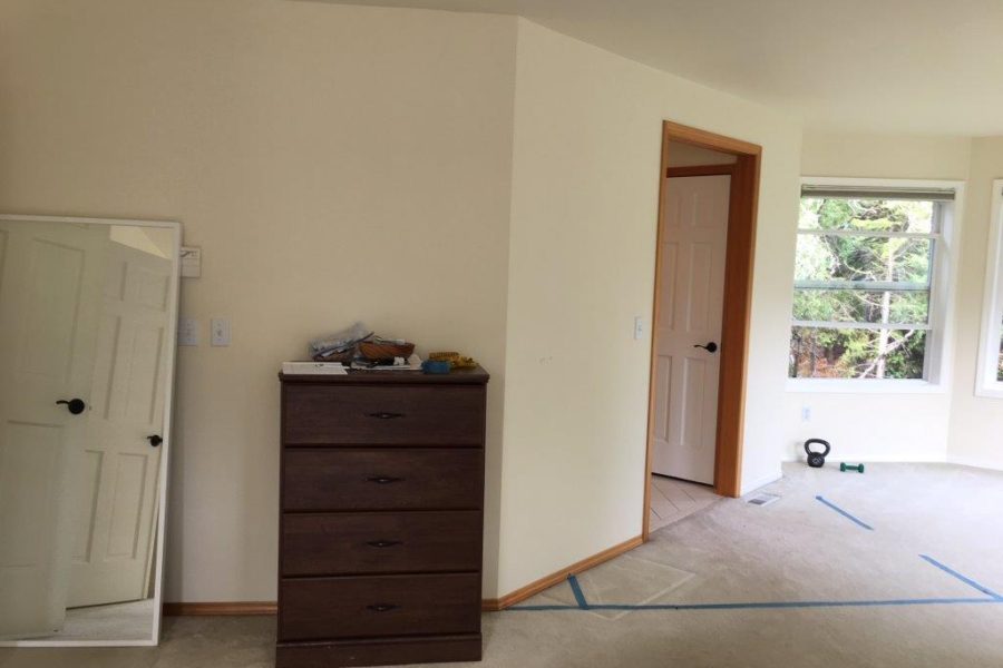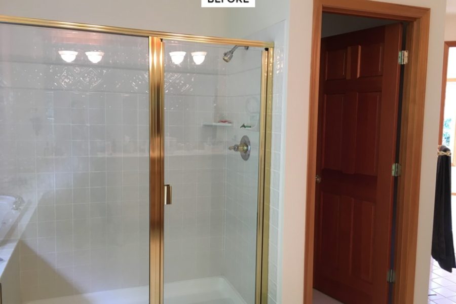 We came up with a plan that would create more logical space in their master bedroom, nook and master bathroom. First, we moved the angled door to the middle of the bathroom creating a grandeur of an entry. Finishing it off with two master closets on either side with lots of storage. We also, made the walls straight in the sitting nook, resulting in more room in the bathroom to work with. And we removed the tiny angled linen closet that blocked the entry, and nothing would even fit in it.